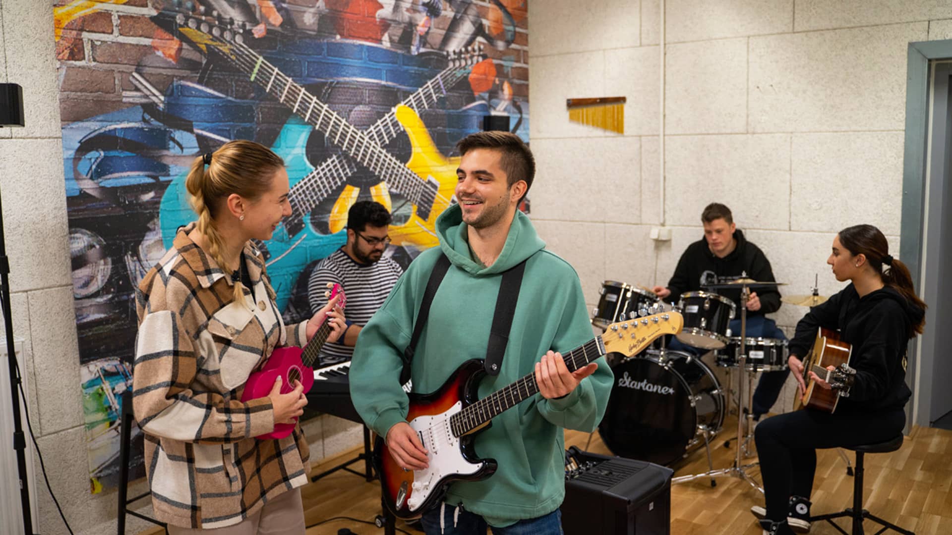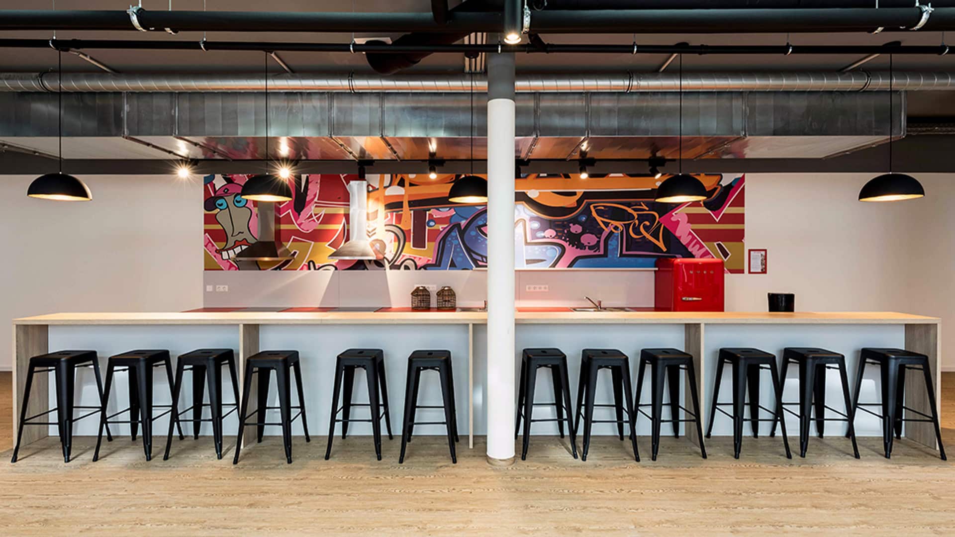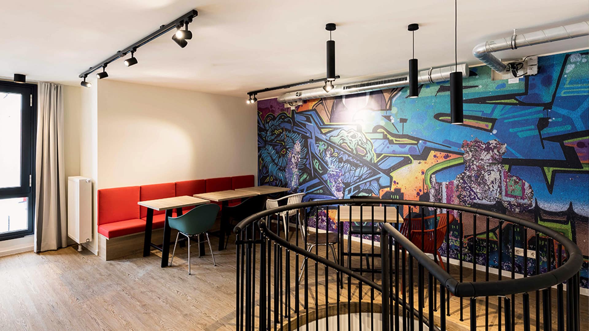 在公寓公共区域、在拥有360°景观的屋顶露台上或在内部的健身室里,在烹饪或演奏音乐时,可以结识来自世界各地的年轻人。健身房会员资格包括在房租中。