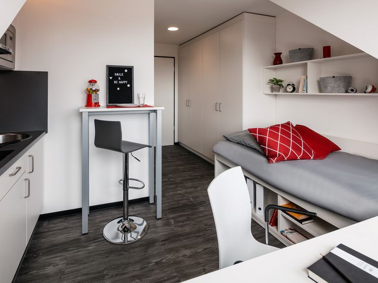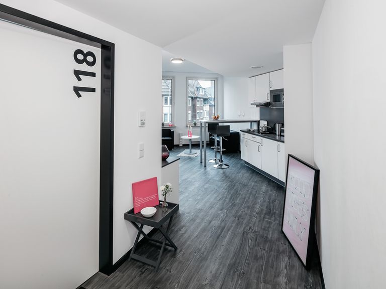 Leonis公寓地理位置优越,步行即可到达市中心和明斯特大学,公寓有 175 个房间,提供多种类型的studio房型,配套设施完善,配有健身房、电影放映室、洗衣房、维修团队等设施服务,周边生活交通便利,靠近博物馆,周边超市和餐馆林立。