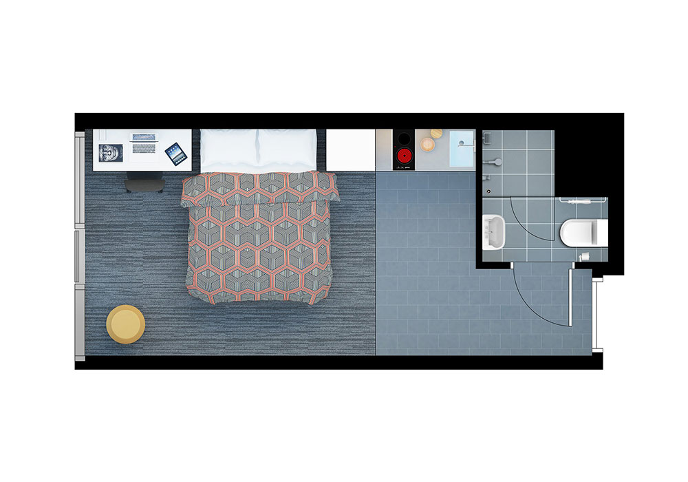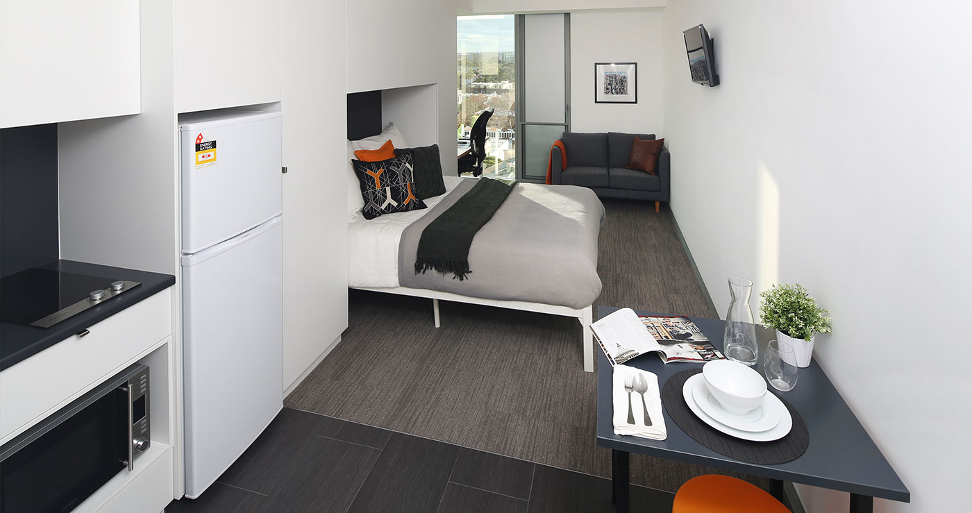 公寓提供Studio和Ensuite两种房型, 公寓大厅配备24小时监控+安保+前台, 时刻保证学生安全