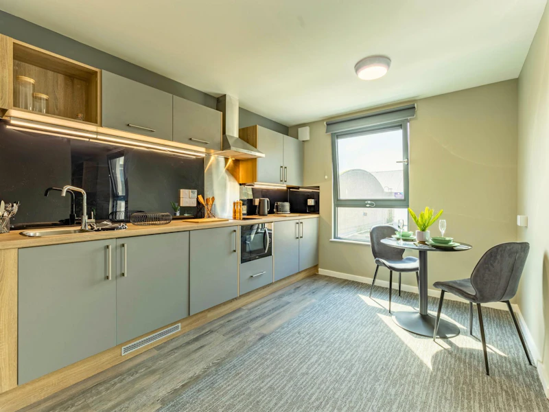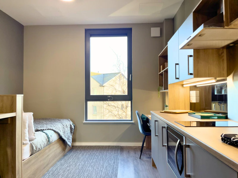 市中心生活谁不爱啊!步行 3 分钟直达核心商圈,逛街、打卡网红店、日常办事都方便;5 分钟到餐厅,11 分钟有中餐厅还能点外卖,想念家乡味不用忍,解馋超 easy~10 分钟步行到火车站,跨城旅游、出行超便利;12 分钟到大型超市,蔬菜水果、零食日用品一站式买齐,日常采购不用跑远;公交直达两所大学,通勤规划灵活,早课也能从容应对。24 小时安保加持,周边治安靠谱,晚上出门逛吃、取外卖也放心,留学生活充实又惬意!