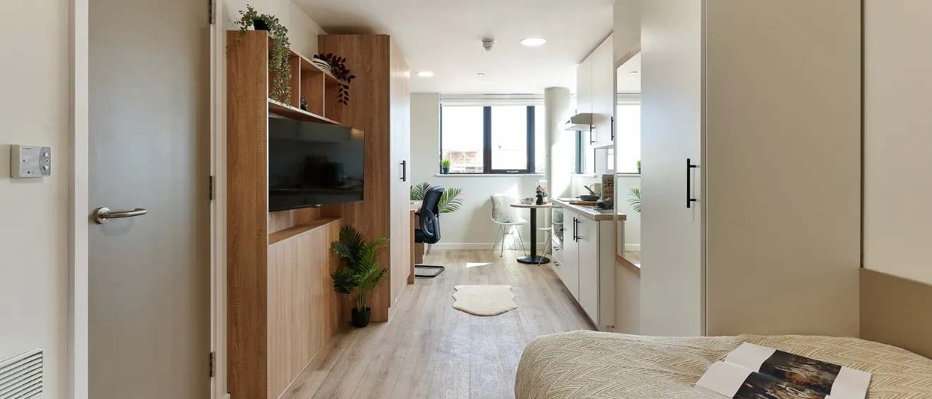 公寓提供Ensuite(独立卫浴,共享厨房) 和Studio(独立厨卫) 两种主流房型。所有房间家具齐全,配备24小时热水和暖气,部分房型还贴心准备了厨房用品,助您轻松开启新生活。(请注意:资料未提及具体房间大小、床型及窗户情况,建议咨询顾问老师获取详细信息。)