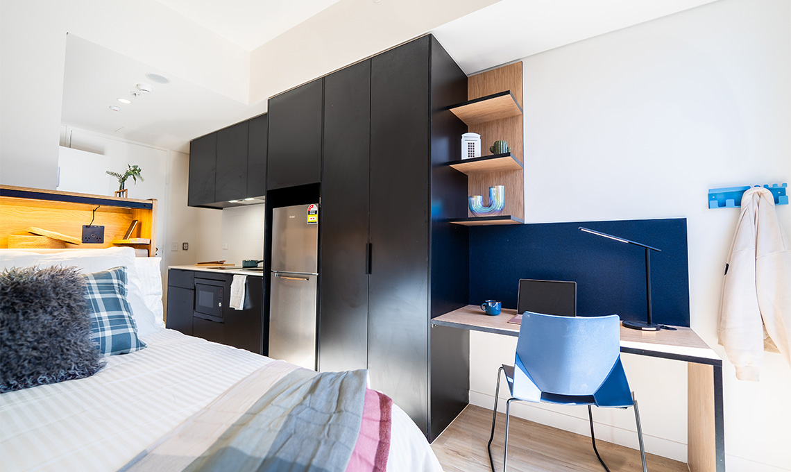 步行3分钟到Kensington超市和Peters of Kensington,日用品、新鲜食材随手买;驾车2分钟达Hoh Won中餐馆,步行25分钟到欢乐新中菜,想家时轻松吃到家乡味。周边多是留学生和年轻群体,生活氛围轻松,偶遇同校同学超易搭话。