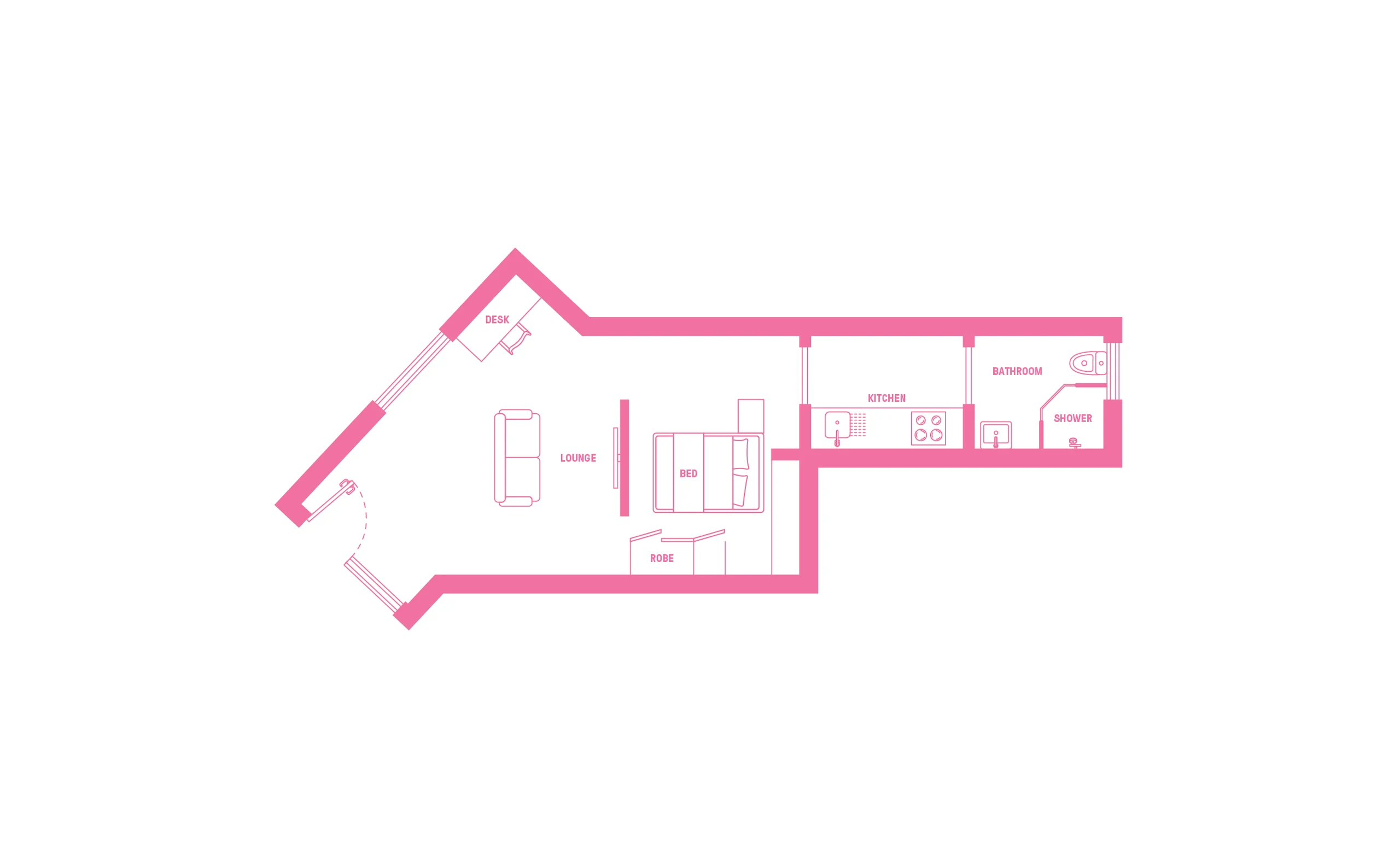 提供两种房型:Studio 房型带独立卫浴与独立厨房,私密自在;Shared Apartment 房型(3/4/6/7 人)共用卫浴和厨房,适合结伴居住
