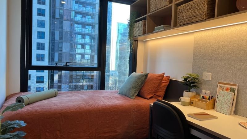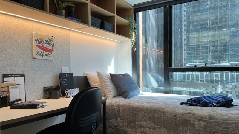 UniLodge Melbourne Central 于 2023 年全新开放,是墨尔本市中心性价比极高的高端学生公寓之一。公寓提供 单间公寓、两居室公寓及六居室套房 等多种房型,房间配备 空调、暖气、微波炉、冰箱与舒适床铺,拎包即可入住。公寓同时拥有 健身房、电影室、自习室、会议室、洗衣房、图书馆及自动售货机 等丰富配套,打造安全、舒适又充满活力的学生社区。