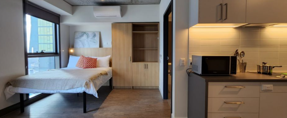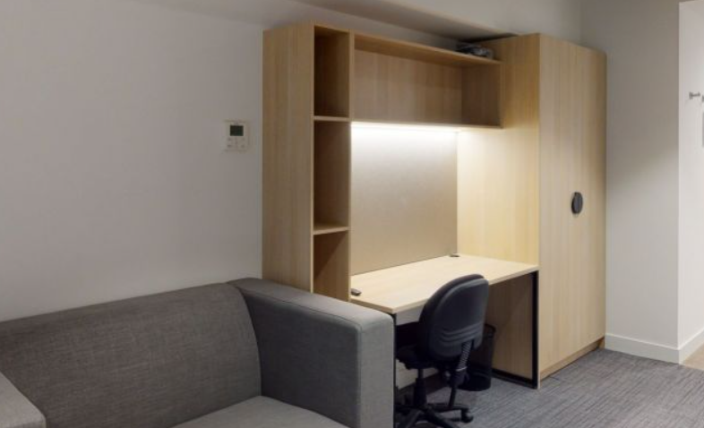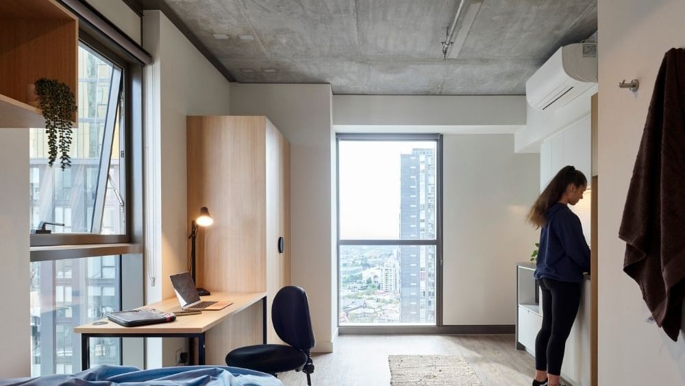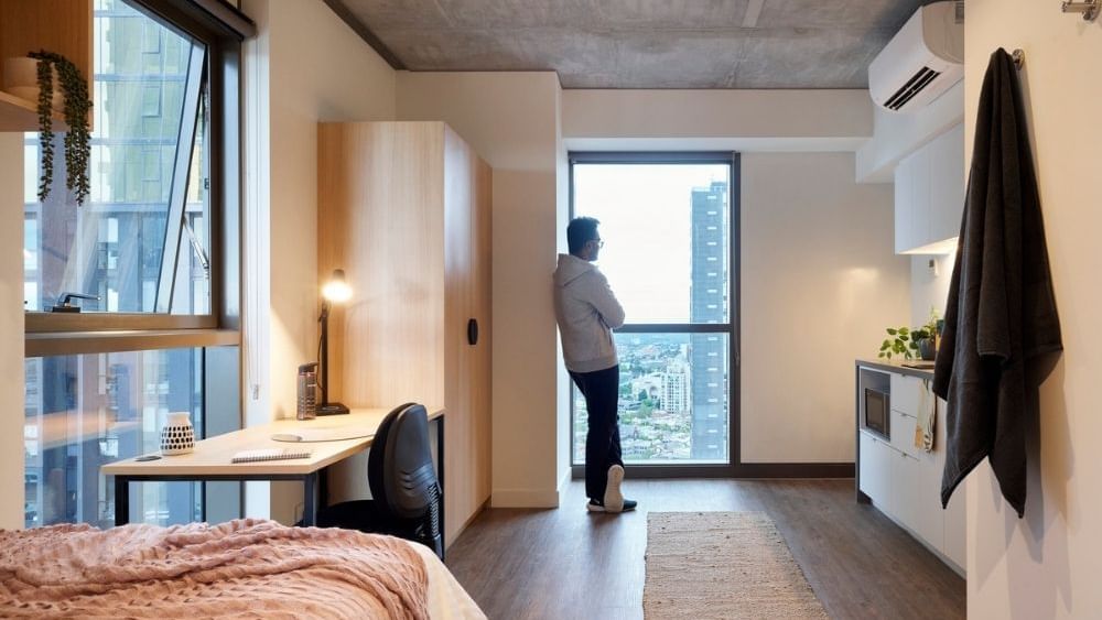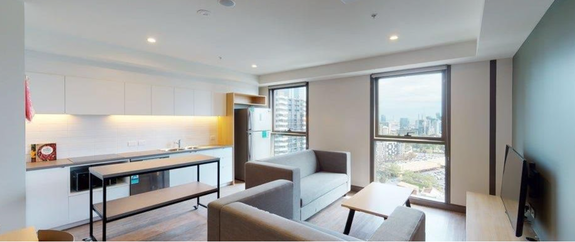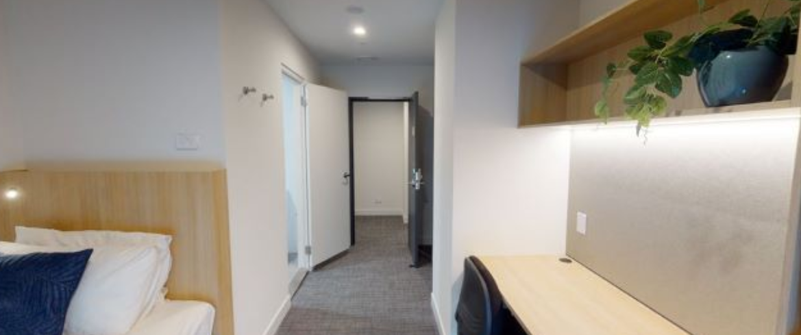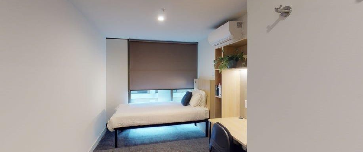 UniLodge Melbourne City 是一座 50 多层的现代学生公寓,位于墨尔本市中心,拥有卓越的地理位置和便利的交通。公寓提供多种户型,满足不同需求的学生。每个房间都配备了 床、衣柜/储物柜、书桌和椅子,为学生提供一个舒适且功能齐全的生活空间。此外,公寓还提供设施齐全的健身房和宽敞的公共区域,让学生能够享受舒适便捷的大学生活。