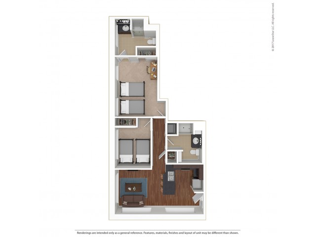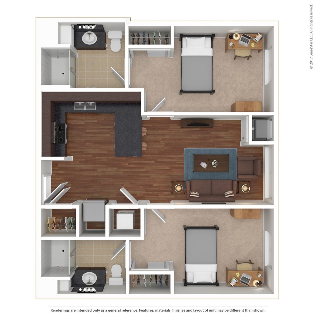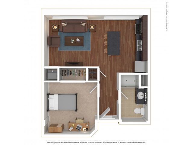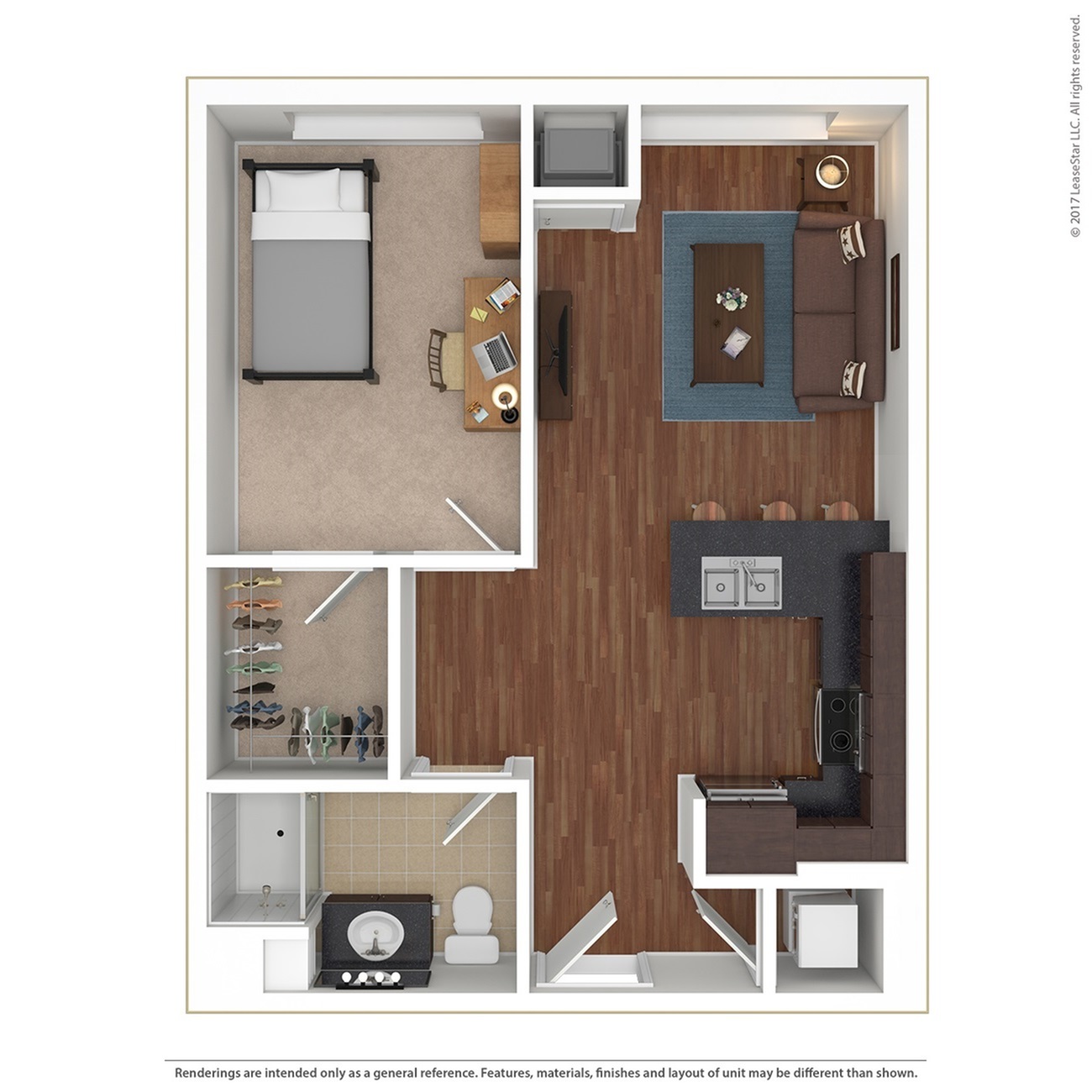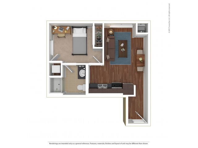 宽敞的空间,配有单元洗衣机和烘干机,大窗户带来自然采光。根据更新时间、所在建筑等情况,某些平面图可能具有不同的设施。