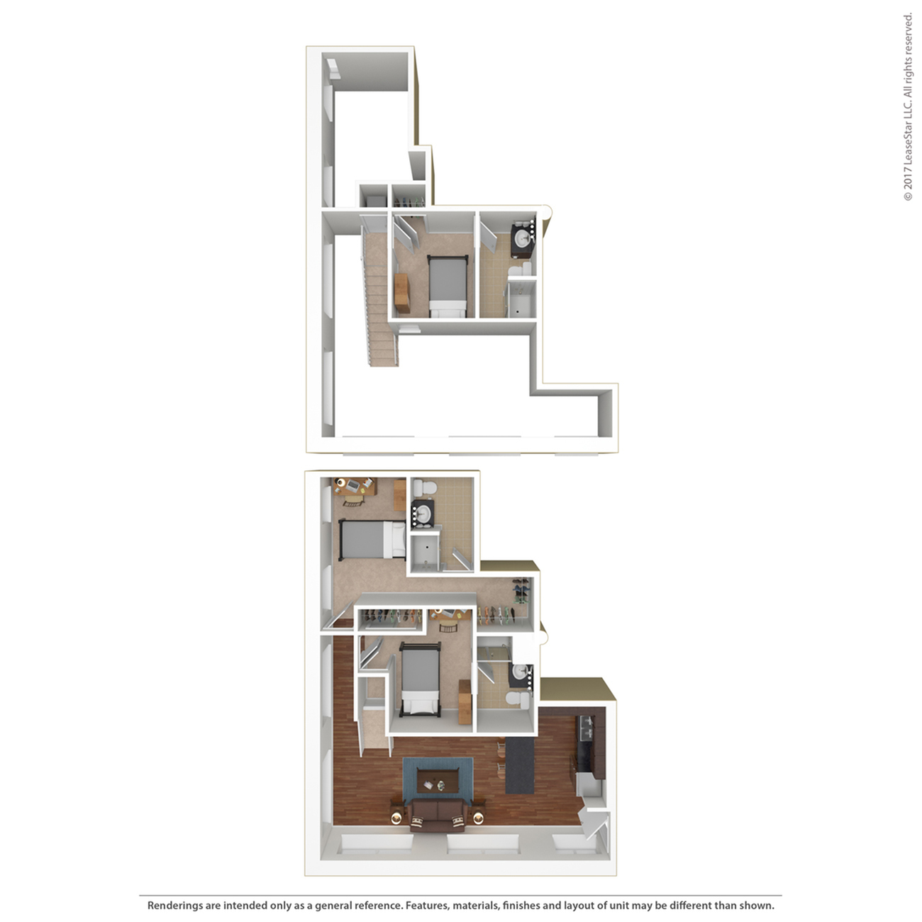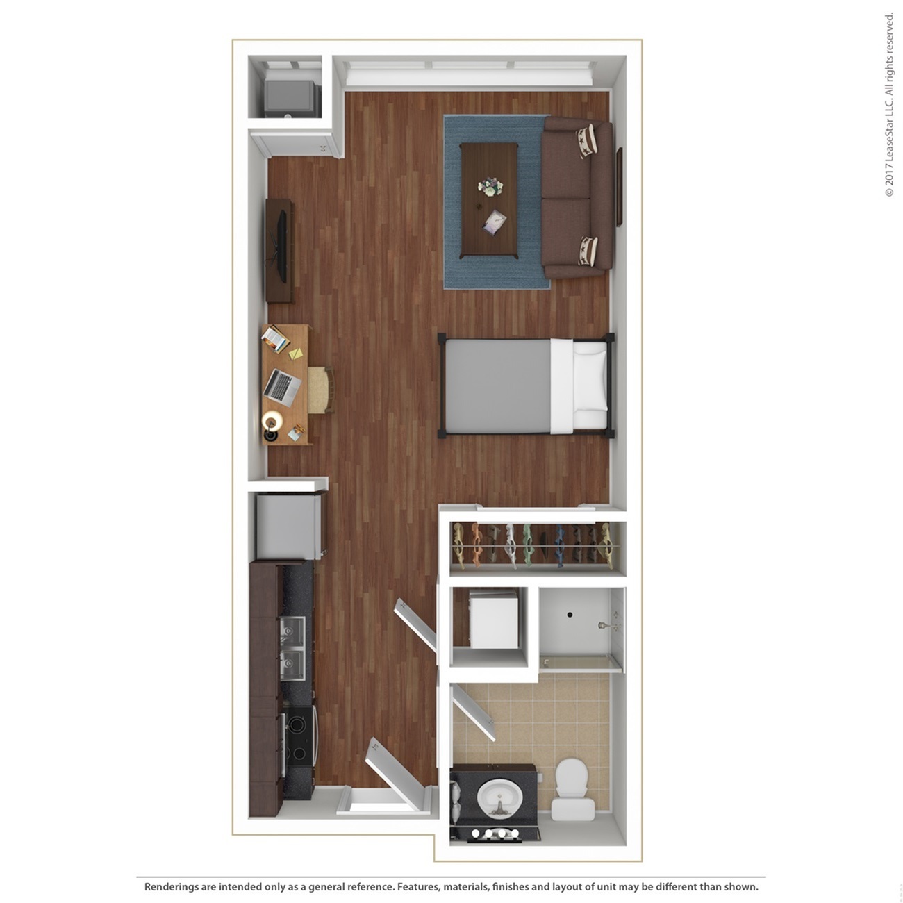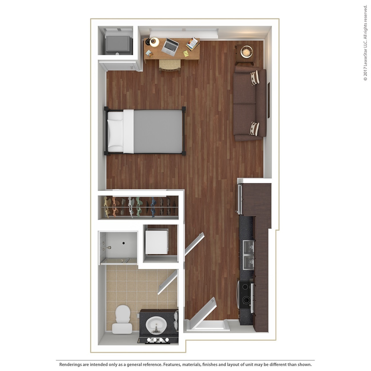 宽敞的空间,配有单元洗衣机和烘干机,大窗户带来自然采光。根据更新时间、所在建筑等情况,某些平面图可能具有不同的设施。