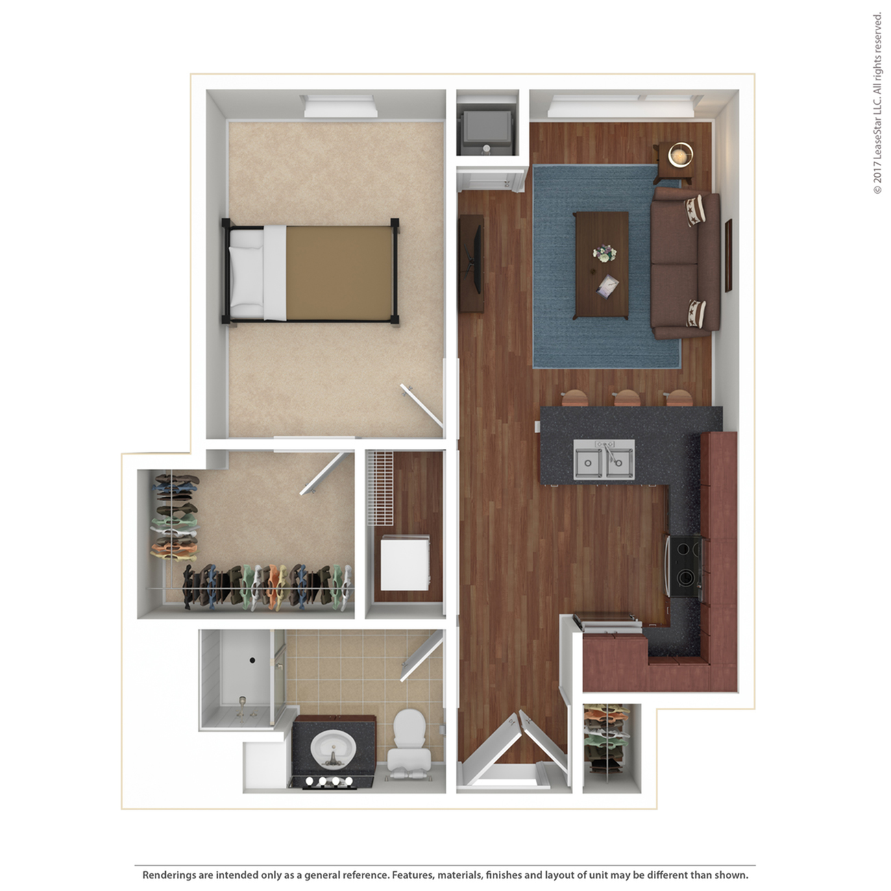 宽敞的空间,配有单元洗衣机和烘干机,大窗户带来自然采光。根据更新时间、所在建筑等情况,某些平面图可能具有不同的设施。