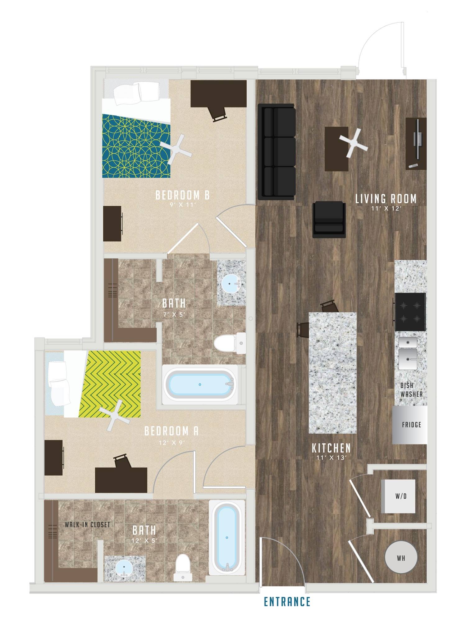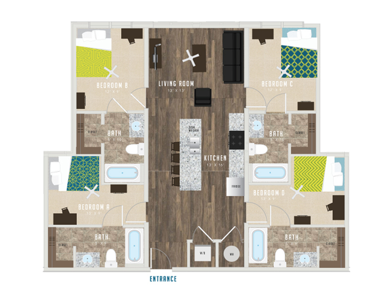 不仅如此,公寓还配备了先进的新安全系统,让您在整个学期内都感到安全!宽敞的空间,配有单元洗衣机和烘干机,大窗户带来自然采光。根据更新时间、所在建筑等情况,某些平面图可能具有不同的设施。