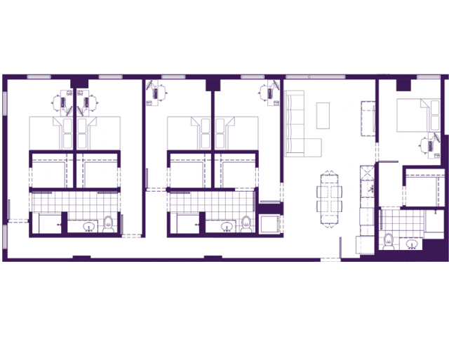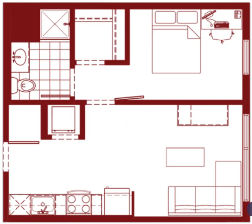 不仅如此,公寓还配备了先进的新安全系统,让您在整个学期内都感到安全!宽敞的空间,配有单元洗衣机和烘干机,大窗户带来自然采光。根据更新时间、所在建筑等情况,某些平面图可能具有不同的设施。