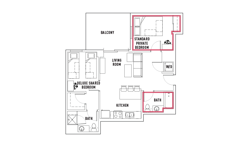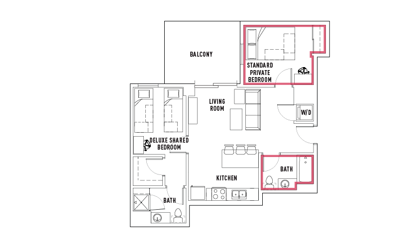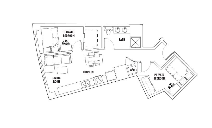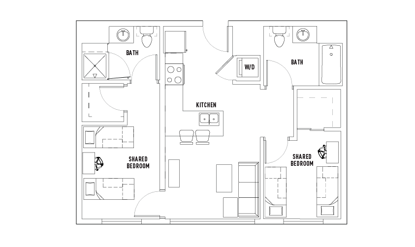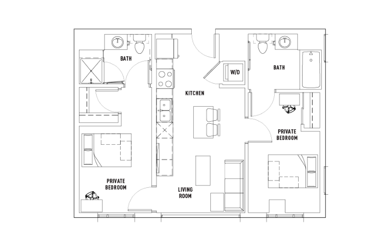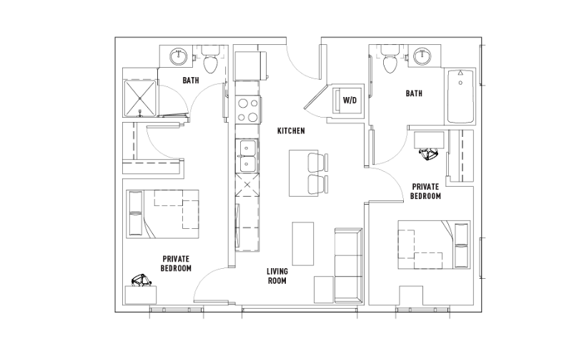 公寓提供现场专业管理和维护服务,以及 24/7 全天候待命员工,随时准备满足您学生的需求。 公寓的室友匹配计划由 RoomSync 提供支持——这是一款室友匹配应用程序,它允许学生创建个人资料、搜索将居住在社区中的其他居民、根据性别认同、年龄范围和兴趣等标准过滤潜在的匹配对象( 仅举几例),通过应用程序本身的文本或视频聊天功能与那些潜在的匹配者聊天——然后匹配!