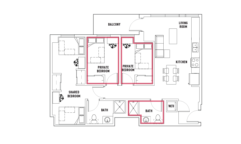 在 The James,公寓为能为住户提供最好的生活体验而感到自豪。 公寓的个人责任租约(individual lease)确保您只对自己的租金负责,而不是别人的!如果室友转学或毕业,您无需担心财务问题。这意味着,如果您的一位室友决定提前离开学校搬走,公寓将支付他们所有剩余的租金。此外,如果另一个租户未能支付他们应承担的账单(电费/暖气费),公寓也会承担这些费用(不包含损坏)。