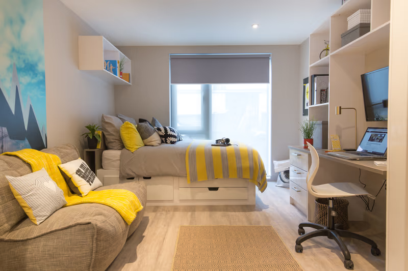 入住温馨舒适的Studio,享受完全独立的厨卫空间。房间配备舒适大床、充足储物空间和书桌。部分房间拥有明亮的落地窗,让阳光陪你学习。厨房配备了冰箱、微波炉等基础厨具,让你可以大展厨艺,慰藉你的中国胃。