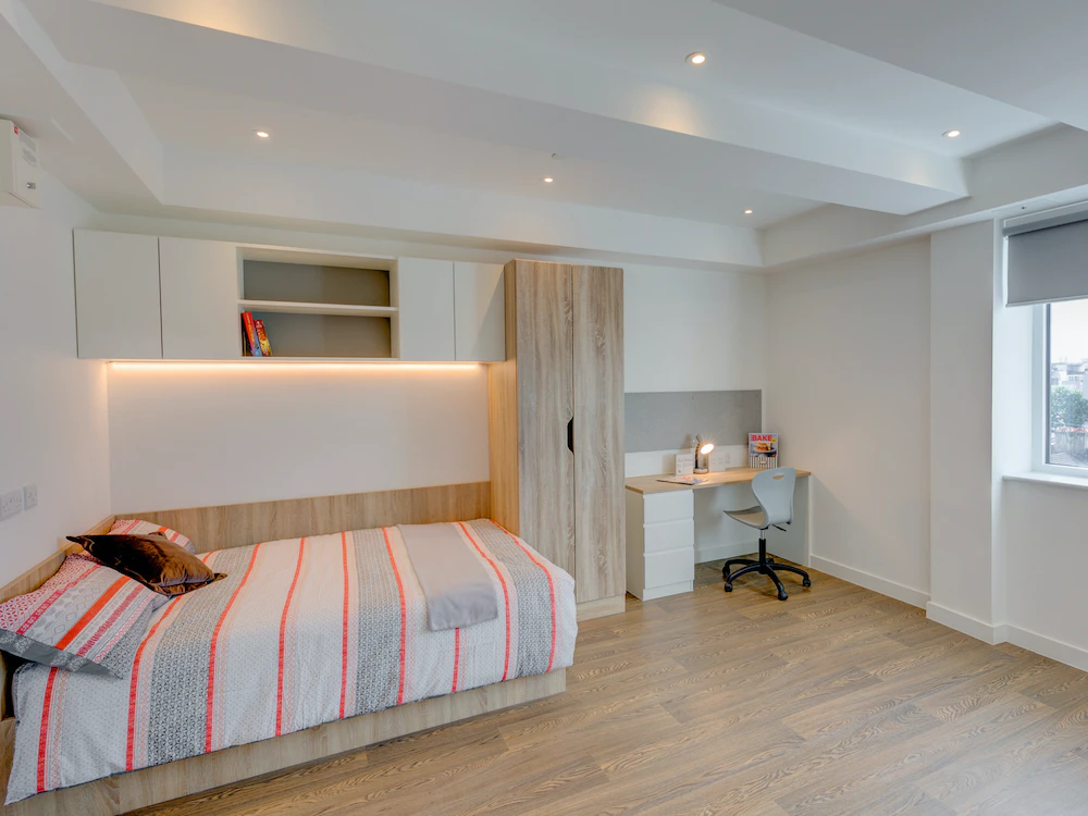 公寓直面大海,下楼即是海滨步道和Hoe公园,是晨跑、散步、看日落的完美地点。步行5分钟内可抵达多家海滨餐厅、酒吧和咖啡馆。前往市中心购物与餐饮区也仅需短暂步行,生活便利与宁静海景在此完美结合。该区域治安良好,环境优美,为学生提供了一个安全、舒适且充满灵感的独特生活环境。
