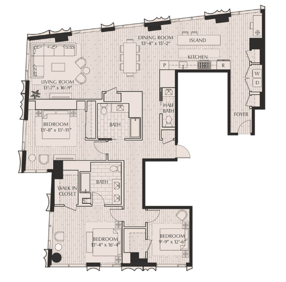 公寓房间内设有独立洗烘设备,洗碗机,空调,冰箱,制冰机,微波炉,烤箱,空间很大的walk-in closet;