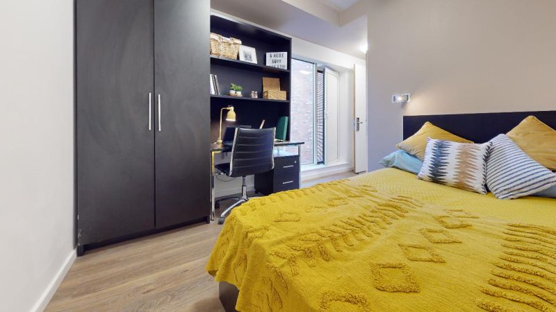 现代化空间,全房型配高品质家具:Studio 带独立厨卫,面积 10-18㎡实用不局促;Ensuite 共享超大厨房,卧室带独立卫浴 + 衣柜,储物空间充足,换季衣物轻松收纳。房间内高速 WiFi全覆盖,暖气可智能调节,双层隔音窗隔绝城市噪音,晚上赶 due、休息都不受干扰,拎包即可入住。
