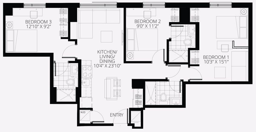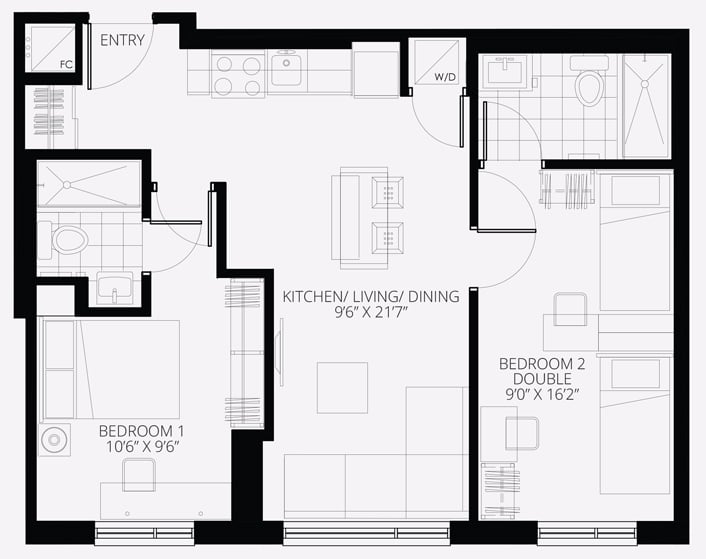 此公寓提供合租公寓,一居室公寓,两居室公寓,三居室公寓以及四居室公寓。在设计时充分考虑了您的需求,设有无障碍单元、客房套房和高档设施。不同的房型都自带不同舒适且现代化的家具,更好地满足了您的需求。 公寓位于市中心旁边景色优美的小意大利,交通十分便利可以前往市内最好的购物、餐饮和娱乐场所。