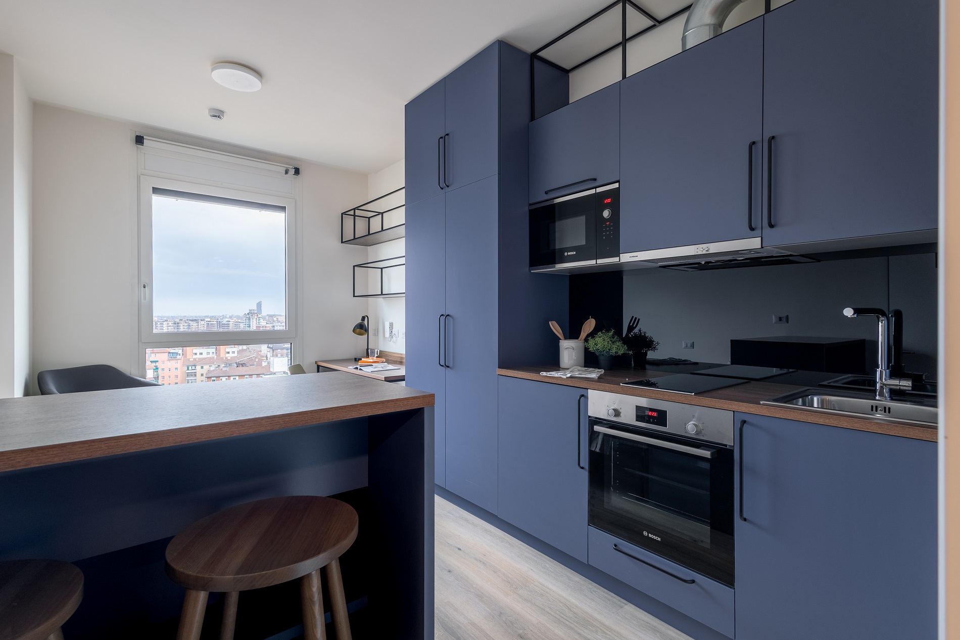 Laude Living Bologna是博洛尼亚最高的建筑之一,从顶层的Sky Lounge可以欣赏到中世纪市中心的无与伦比的景色,从那里您可以欣赏到被切断的日落,并与新朋友进行最好的自拍。