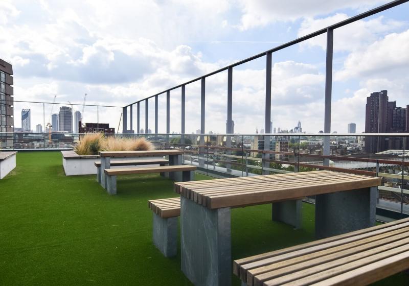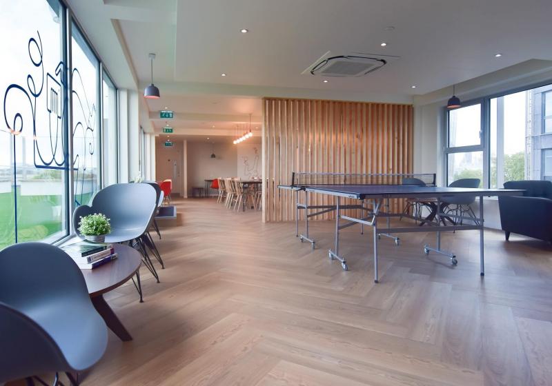 24 小时门禁卡 + 安保巡逻 + 全程监控,安全感拉满;前台可代收快递,维修团队响应及时超省心。公共区域亮点十足:设备齐全的健身房(免费使用,常有同学结伴锻炼)、景观屋顶露台(自习累了看城景放松)、安静学习室(赶 due 刷题氛围浓厚)、游戏室和社交休息室,还有洗衣房、电梯、自行车库及自动售货机。物业定期组织社交活动,和邻近 iQ 公寓联动,80% 住户是 KCL、UAL 等高校学生,新生轻松融入集体。