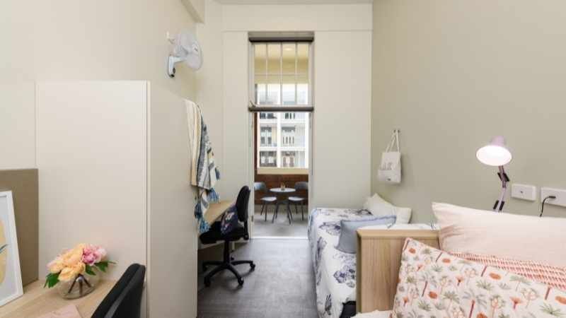 每间客房都配备了舒适生活所需的所有设施:特大号床床架和床垫、衣柜、书房桌椅。客房配有安装的风扇,光线充足,可通往阳台区域。居民还可以享受靠近昆士兰大学、研究机构和所有主要公共交通连接的乐趣。