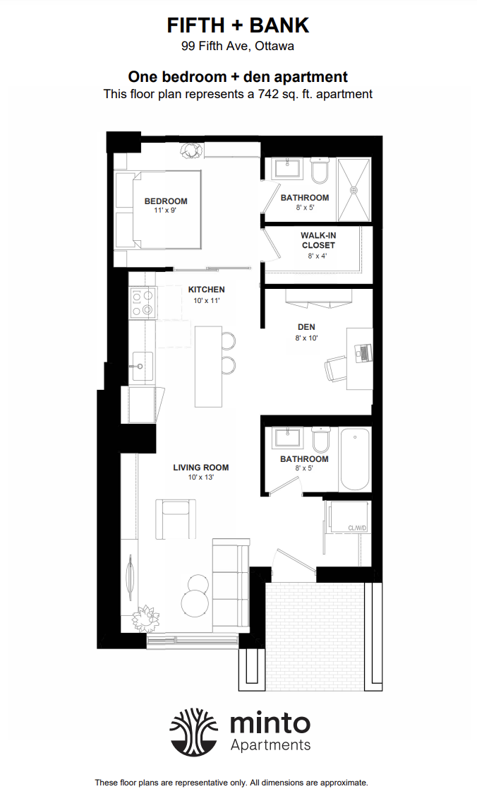 除了您的套房外,您还可以享受 Fifth+Bank 提供的所有便利设施。 在最先进的健身中心保持健康,该中心配备智能设备和一系列训练项目。 在庭院里放松身心,或在户外露台上举办烧烤活动,非常适合与朋友和邻居社交。您的毛茸茸的朋友也会在跑道和宠物水疗中心感到宾至如归。 其他建筑设施包括室内停车场、24 小时安全控制通道以及 Rogers Ignite™ 高速互联网。