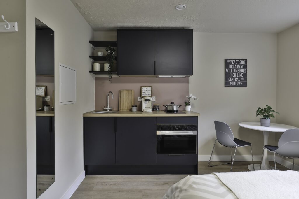 特色设施:有全新游戏室(能玩桌游、看电视)、 communal 客厅(适合办派对)、安静自习室(专属学习空间,没人打扰,考试周复习超给力);全年免费搞活动,比如新生见面会、节日聚餐,独居也能认识新朋友,不怕孤单。