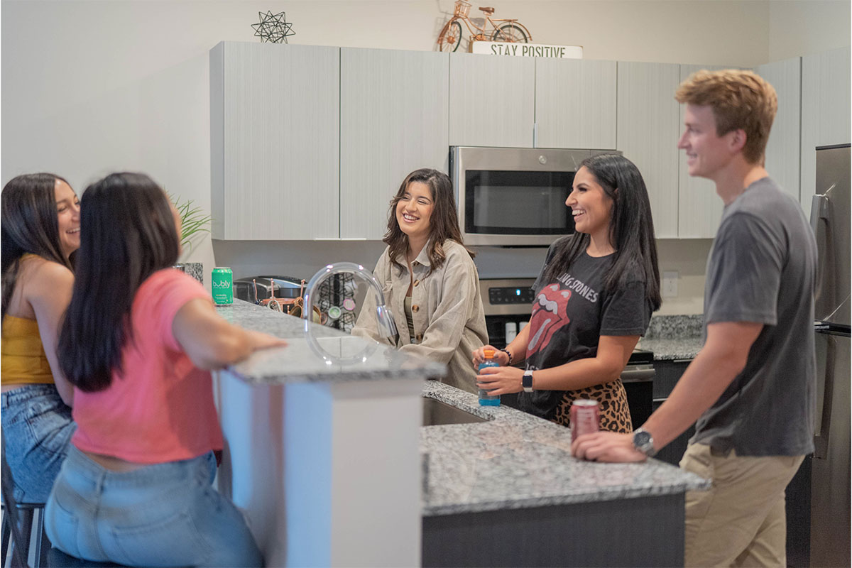 每个公寓都配备了高速互联网和Wi-Fi,以满足今天的数字化学生的需求。这项服务,连同有线电视和大部分的公用事业,都包含在每月的分期付款中,让学生可以无忧无虑地专注于他们的学习,不受不必要的中断的影响。设想一个先进的学生住房社区,提供装饰现代且舒适度极高的多层联排别墅。每个家都配备了私人卧室,其中配备了顶级的、定制的家具套装,包括沙发、桌子、平面电视、餐具套装、床垫套装、床头柜、书桌和鞋架。再加上一系列优质的家用电器,确保你在日常生活中能够随手得到便利设施。