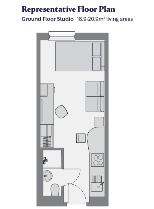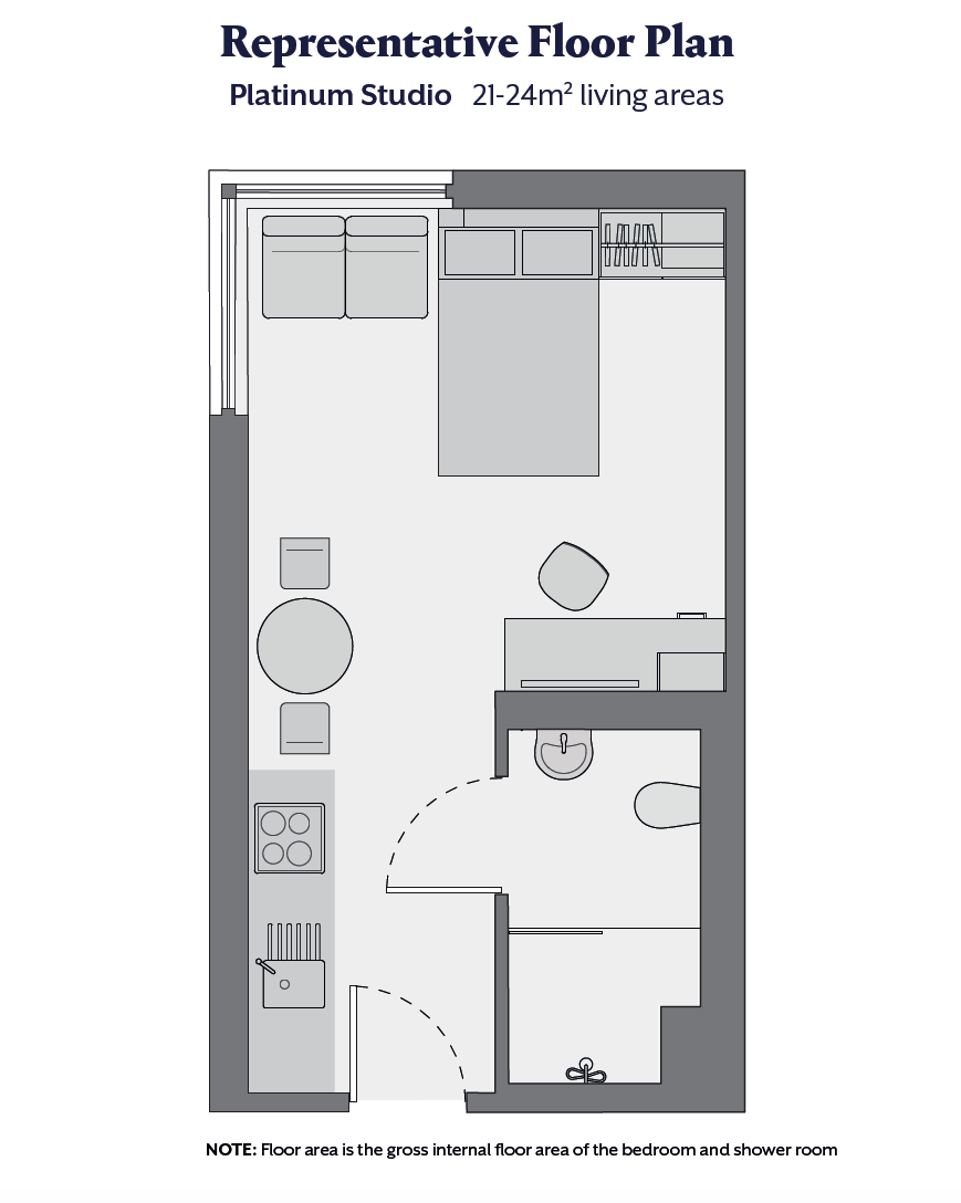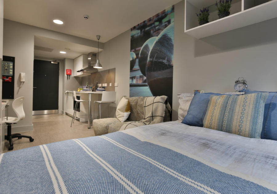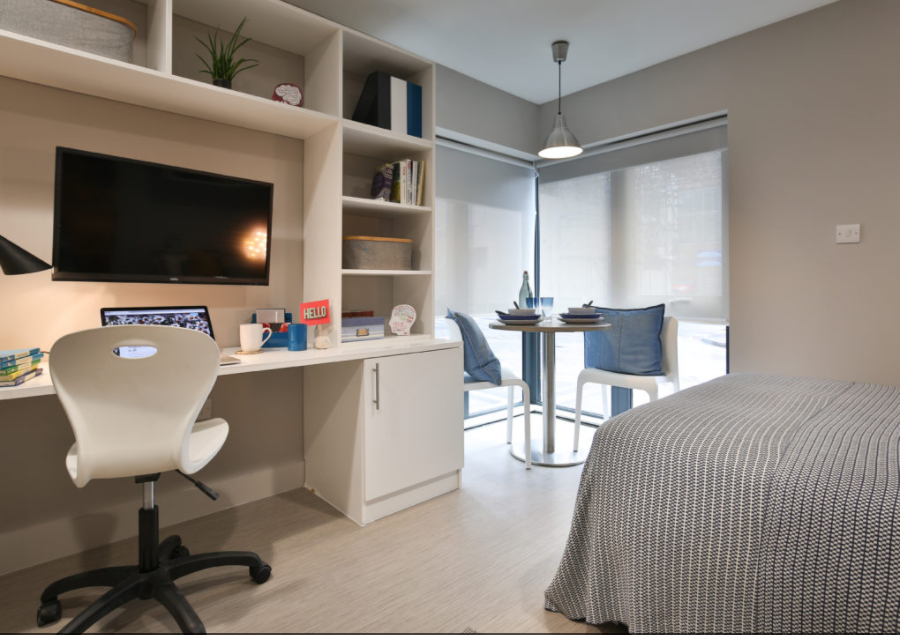 房间类型清晰,Ensuite 为多人共用厨房、独立卫浴的单人房,Studio 是独立厨房卫浴的套房,厨房都配有冰箱、微波炉、吸尘器等设备,部分房间带落地窗,采光极佳。所有房间均有全套家具,暖气充足,24 小时热水,窗户可正常开启,居住舒适。