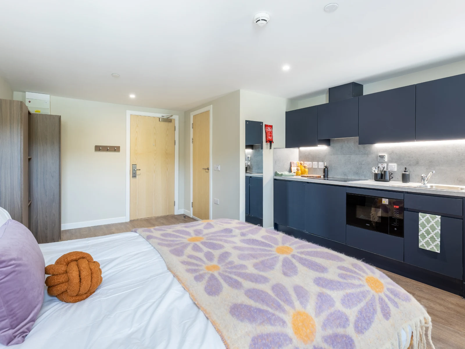 主打多种时尚宽敞 Studio,每个房间都带私人卫浴 + 独立厨房,经典 / 豪华房型任选,还有无障碍房型可选。双人床、专属学习区、大衣柜配齐,学习生活分区超合理。租金直接全包水电网,免费高速 WiFi 加持,网课、追剧、开黑零卡顿,拎包入住超省心,独立生活与社区氛围完美平衡。