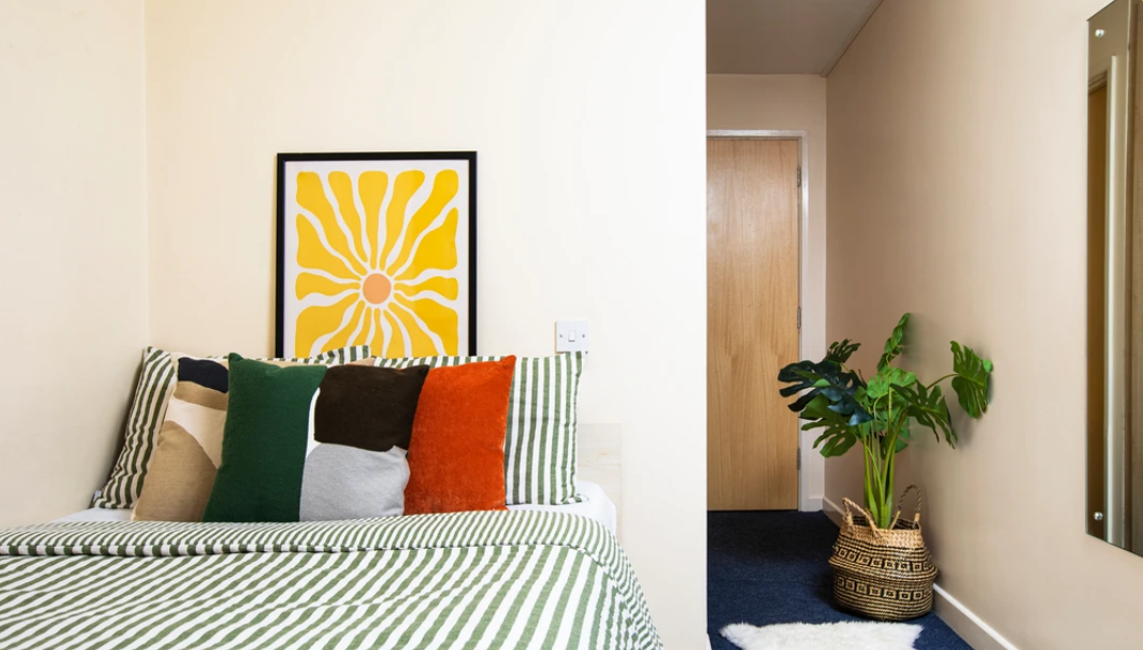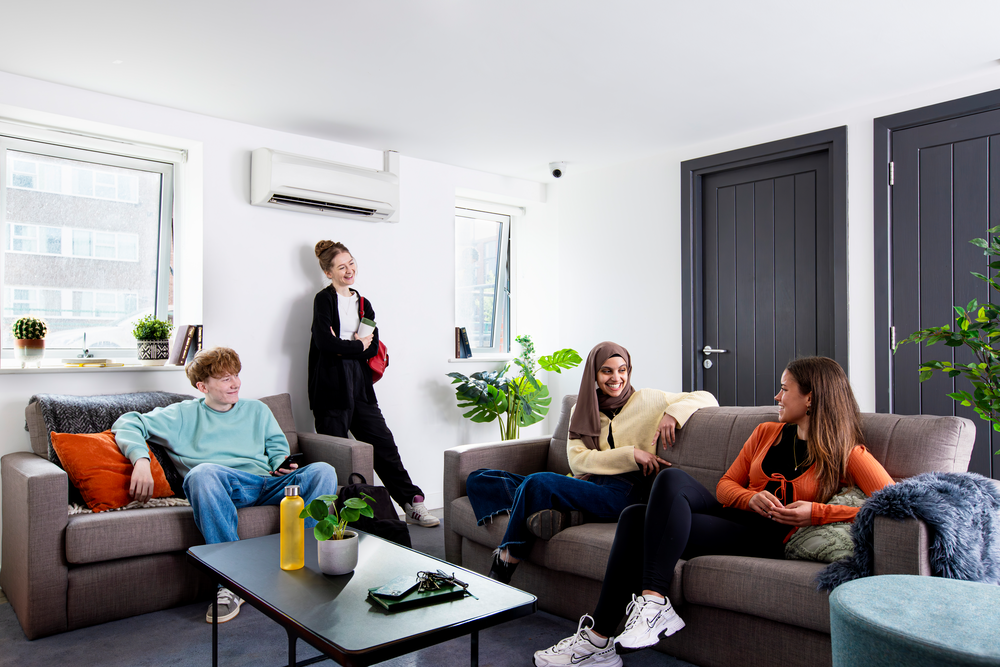 生活必备设施:可容纳553名学生的大型学生社区,提供En-suite(独立卫浴共享厨房房型),4人间,配备私人独立卫浴,平衡 “轻社交” 与个人隐私,居住舒适度更高。房租已包含暖气、水费、电费,无需额外分摊;公寓内(含房间及公共区域)全覆盖 Wi-Fi,且提供超高速宽带,满足线上学习、娱乐需求。提供自行车存放处、自助洗衣房及垃圾分类回收点,解决日常居住基础需求。配备 24 小时监控(CCTV)、24 小时协助服务及驻场服务团队;采用门禁安全准入系统与消防系统,同时为住户提供财物保险,居住安全性十足。