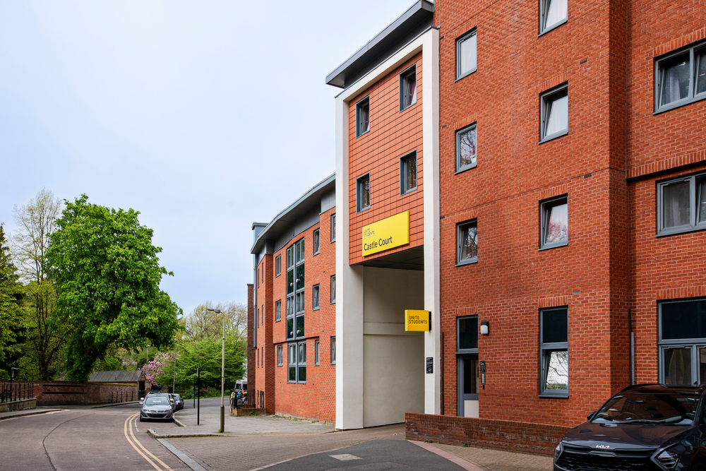 Castle Court 紧邻莱斯特市中心,因紧邻莱斯特地标建筑Leicester Castle而得名,公寓提供4人间的Ensuite房型,独立卫浴超方便,性价比超高,步行5分钟到校,水电暖网全包+24小时安保。