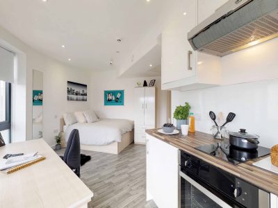 内部提供了完善的生活设施和周全的服务,旨在为学生创造一个安全、舒适的居住环境,主要提供 En-suite(独立卫浴,共用厨房)和 Studio(独立卫浴,独立厨房)两种房型 。