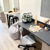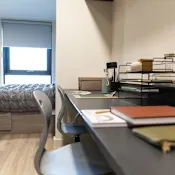 房间均为 Studio 房型,作为独立厨房与卫浴的开放式套房,配备全套家具与基础厨房用品,满足独立居住与简单烹饪需求。房间暖气供应充足,24 小时热水保障日常洗漱,窗户可正常开启,通风采光条件良好。