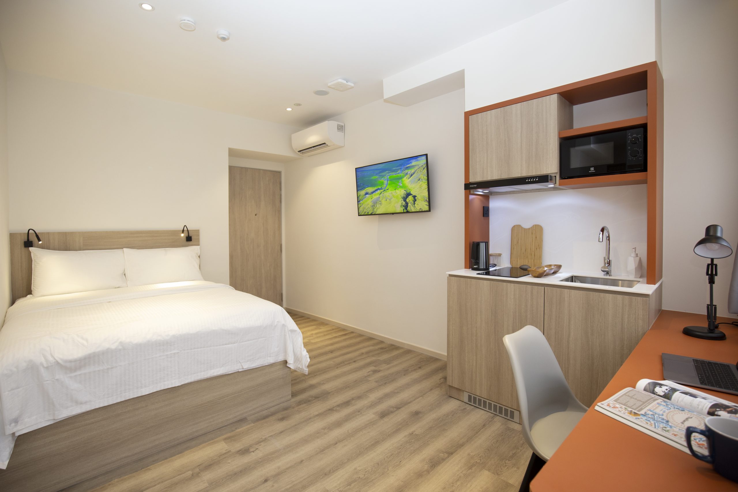 多种房型可选,不管是个人、情侣或者小家庭都可以在这里轻松找到属于自己的居住空间。所有单元均配有连接浴室、小厨房和洗烘一体机,并提供清洁服务。如果需要更大的工作空间,配有宽敞书桌的Business Suite是职场人士的理想之选。一楼还有一家融合美食饭厅。 有多种房型可供选择,单身人士、情侣甚至小家庭都能找到适合他们自己的居住空间。所有房间都配有独立浴室、个人厨房和洗衣烘干机,并提清洁服务。如果需要更大的工作空间,配有宽敞书桌的Business Suite是职场人士的理想之选。一楼还有一家饭厅。