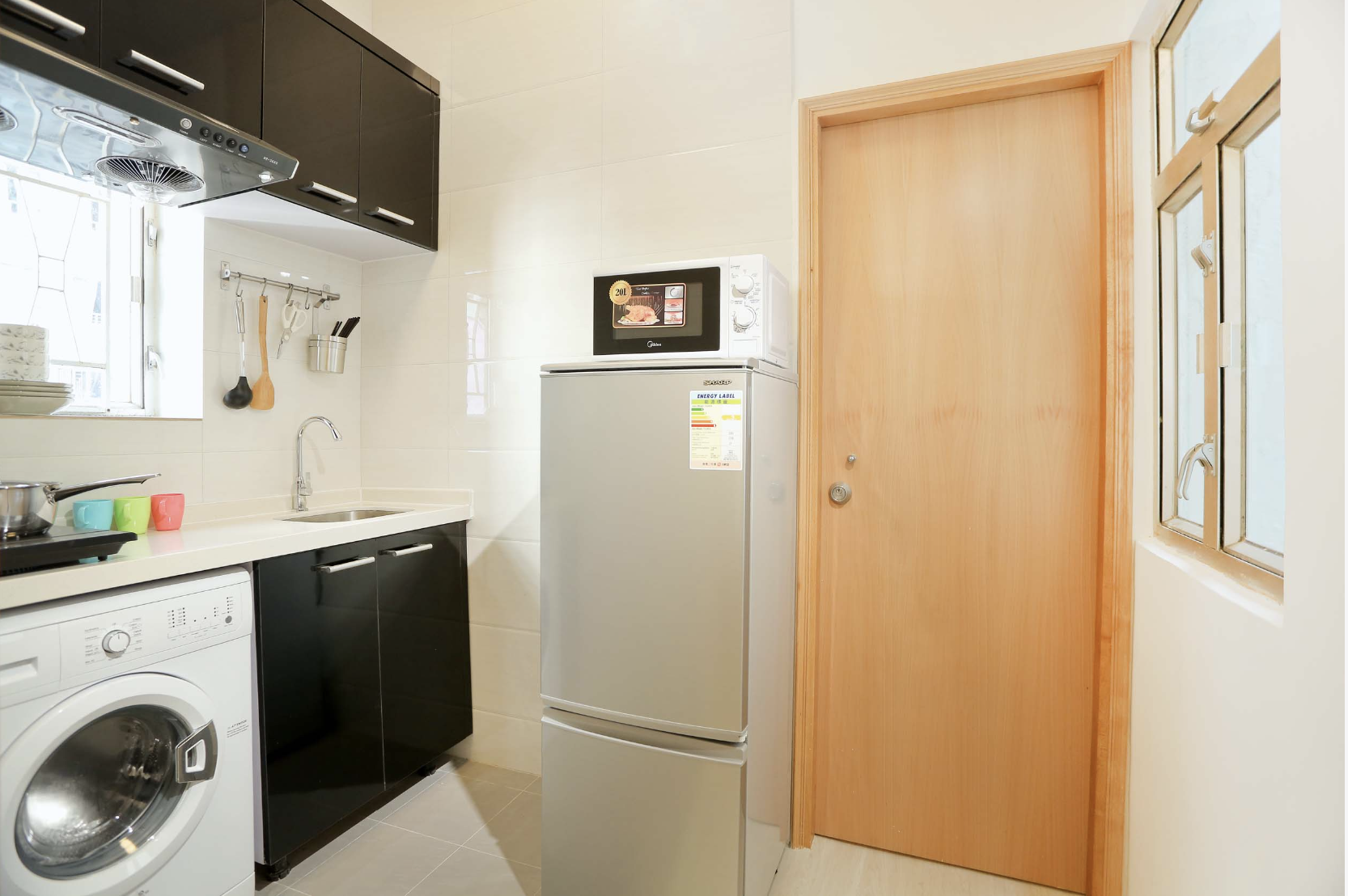 共享客厅及厨房,设施完善,包括煮食区,冰箱,洗衣机等