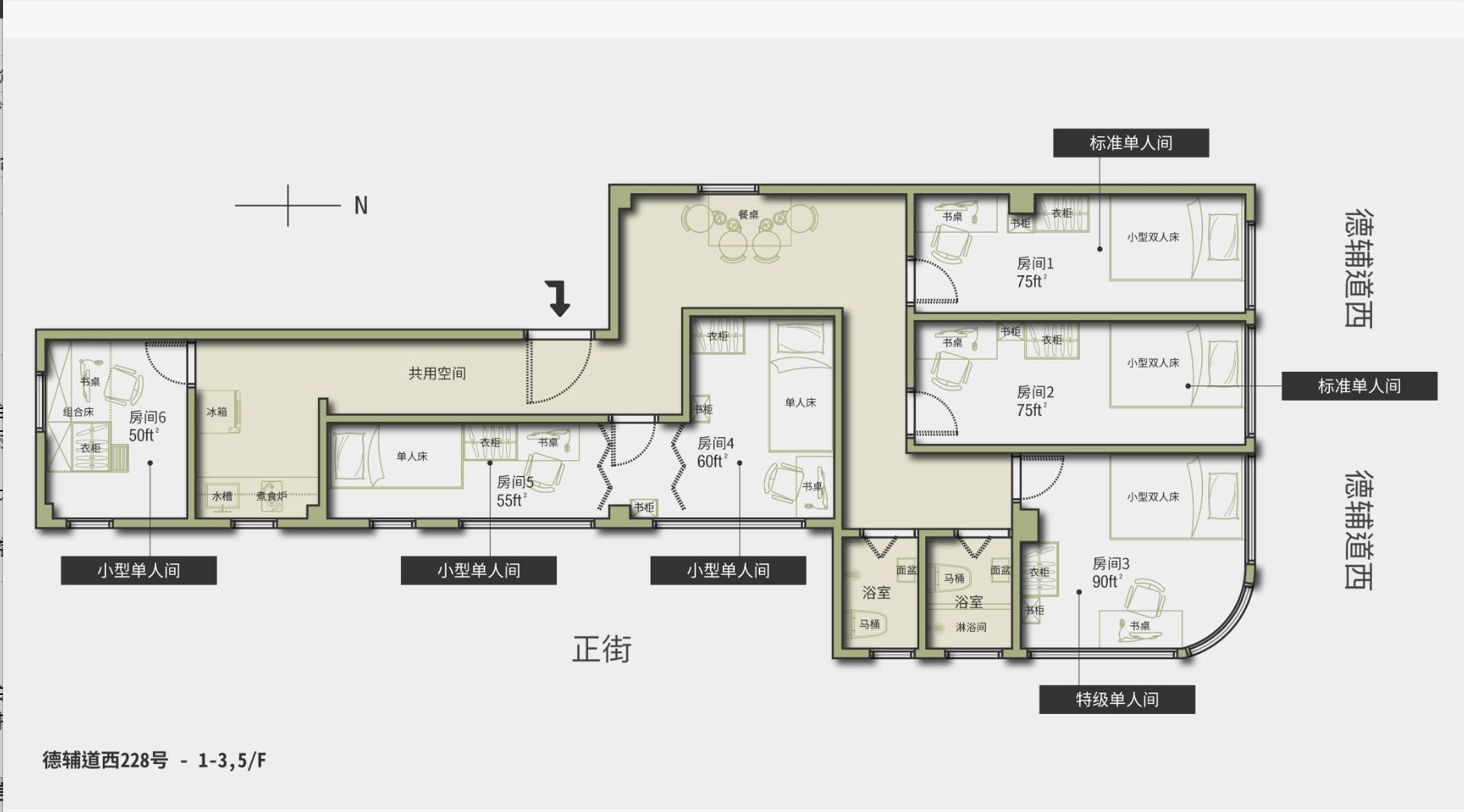 西营盘德辅导西228号地理位置优越,靠近香港大学,为大学认可校外宿舍,设有多种房型的合租房间,男女不混住,生活交通便利。公寓配套设施齐全,设有24小时保安监控系统,附近生活配套完善,楼下有超市,餐厅等。房型多为6人合租,提供公共厨房以及2个卫浴间。附近生活配套完善,楼下有超市餐厅家品店。