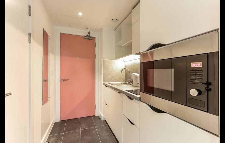 -公寓主要提供studio户型,面积17平左右,所有房间都配备了独立卫浴和私人厨房,让你在异国他乡也能拥有一个不被打扰的私密小窝。厨房里配备了灶台、烤箱、微波炉和冰箱;房间内还有定制衣柜及充足的储物空间。