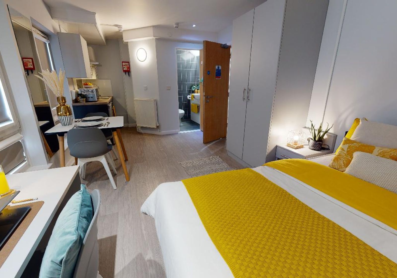 伯明翰中心地带,伯明翰学生公寓的热门之王,公交9-20min可内覆盖阿斯顿大学、伯明翰城市大学,步行10分钟Five Ways火车站直通全城所有目的地。