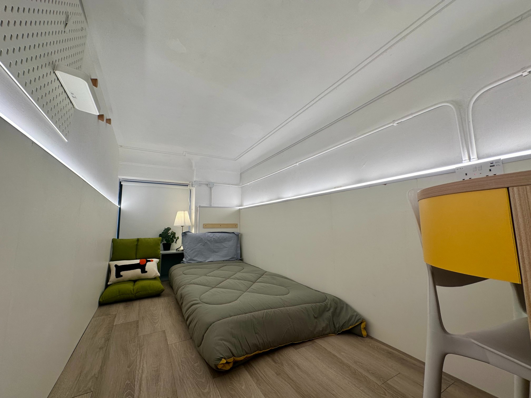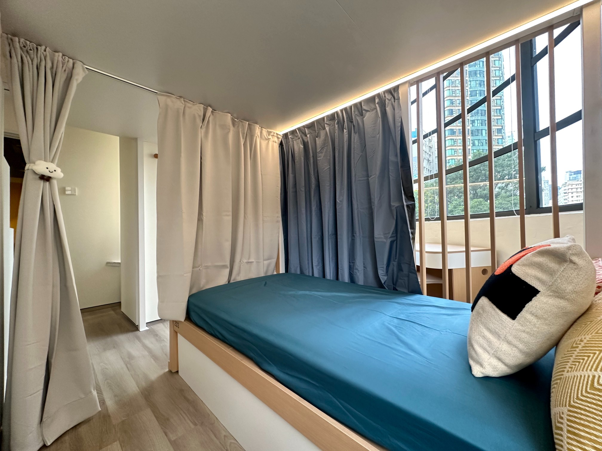 该单元的上层阁楼设有一张全尺寸(1.35米 x 1.9米)日式榻榻米风格的床,下层阁楼设有专门的学习区,方便集中精力提高工作效率,并有充足的储物空间,让您的空间井然有序。