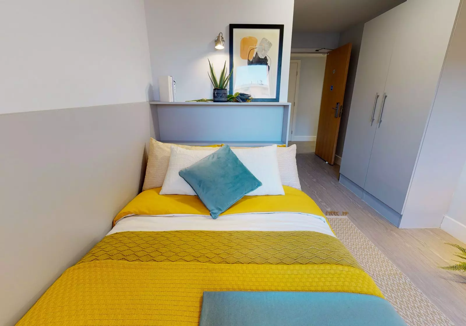 爱丁堡现代感学生公寓,2021年翻新,近 Haymarket 火车站与多所校区,Ensuite/Studio 房型可选,租金包水电暖 WiFi,学习生活通勤超便捷。