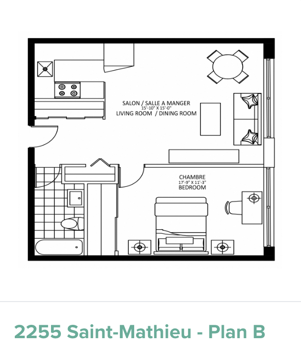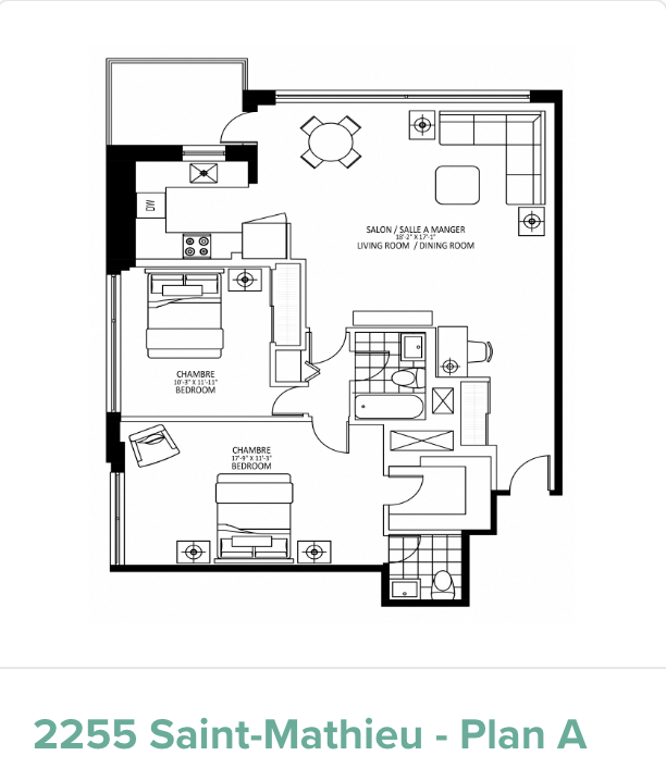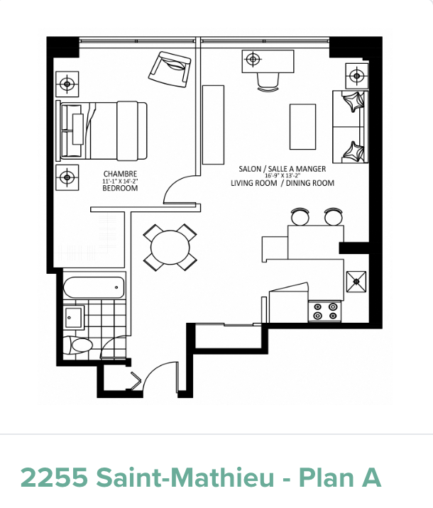 2255 Saint Mathieu地理位置优越,靠近康考迪亚大学和麦吉尔大学,公寓配套设施完善,提供一系列单间、一居室和两居室房型,公寓设有宽敞的屋顶露台,配备设施齐全的健身中心和舒适的社区活动室,公寓周边生活交通便利。