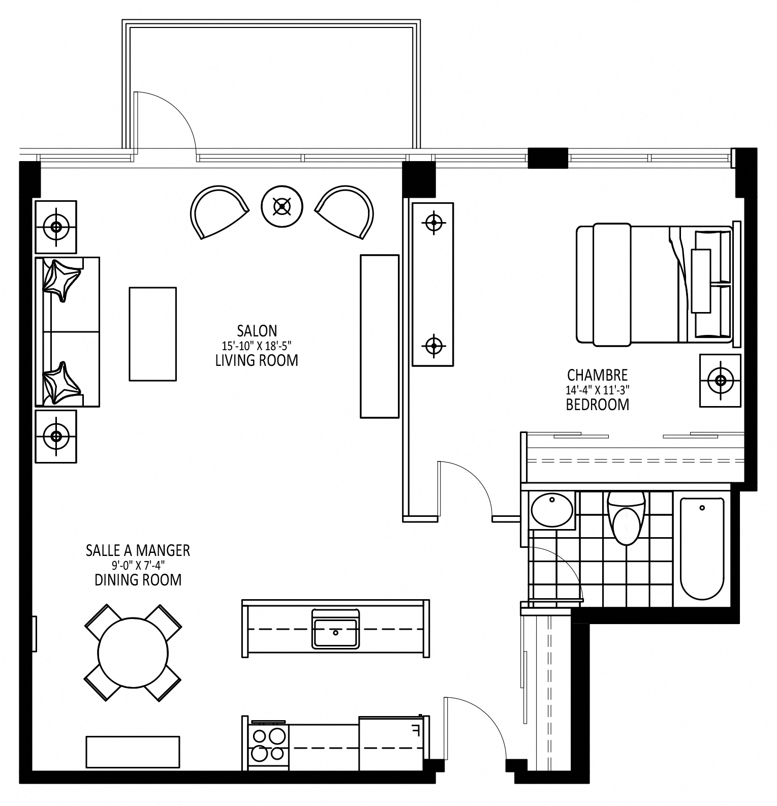 Trent & Kingsley地理位置优越,公共交通便利,驱车片刻即可到达蒙特利尔市中心,可轻松前往 15、20 和 40 号高速公路,靠近道森学院和康考迪亚大学,公寓配套设施齐全,提供一居室、两居室和三居室等房型可以选择,公寓周边生活交通便利。