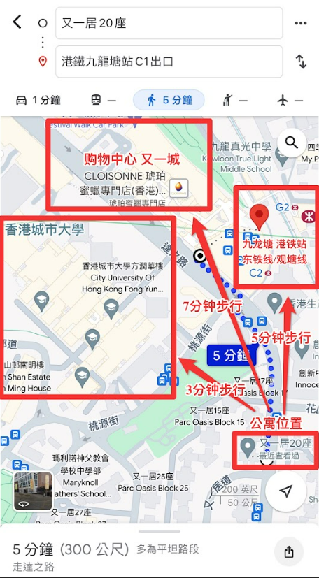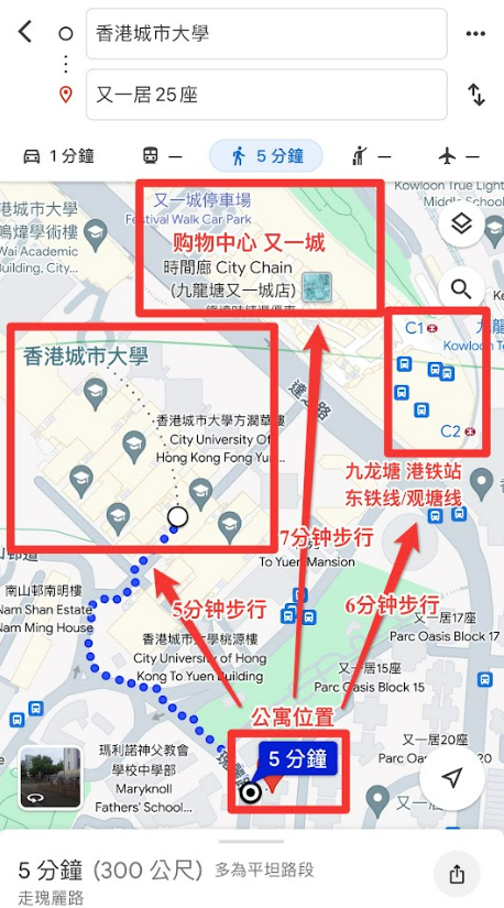 步行5分钟;乘坐公共交通4分钟到达香港城市大学