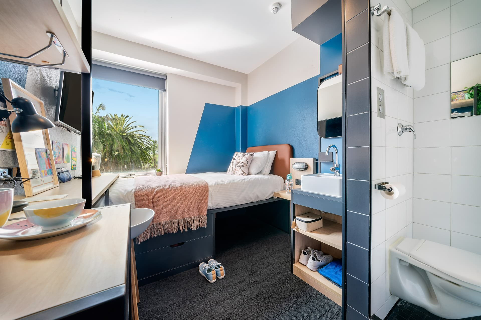 居住服务贴心省心,房价包含每周一次客房清洁(表面擦拭、扫地拖地、垃圾清理),公寓免费提供床单被罩,清洁团队会定期上门更换。周一至周五有4趟免费班车往返市中心,2026年第一学期起将新增拉筹伯大学、皇家墨尔本理工大学邦多拉校区专属班车服务。