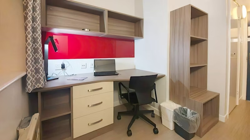 公寓主打舒适实用的 ensuite 房型,多为 4-6 人间布局,每个房间空间宽敞通透,配备标准单人床、书桌、衣柜等基础家具,满足日常居住与学习需求。房间窗户可正常开启,通风效果良好,室内暖气供应充足,为留学生打造温暖舒适的居住环境。公共厨房设施齐全,冰箱、烤箱、炉灶等一应俱全,方便同学们组队烹饪美食、分享家乡味道。