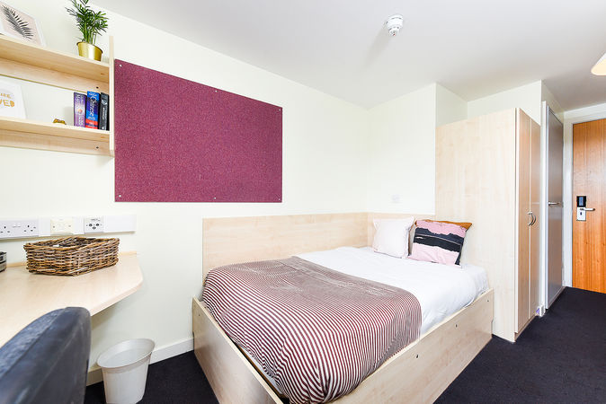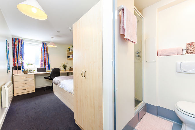 房间内部:主打 20-25㎡独立 Studio,配 1.2 米单人床,窗可开启通风,全屋设暖气(英国冬季刚需),部分房型带小厨房,居住空间舒适实用。