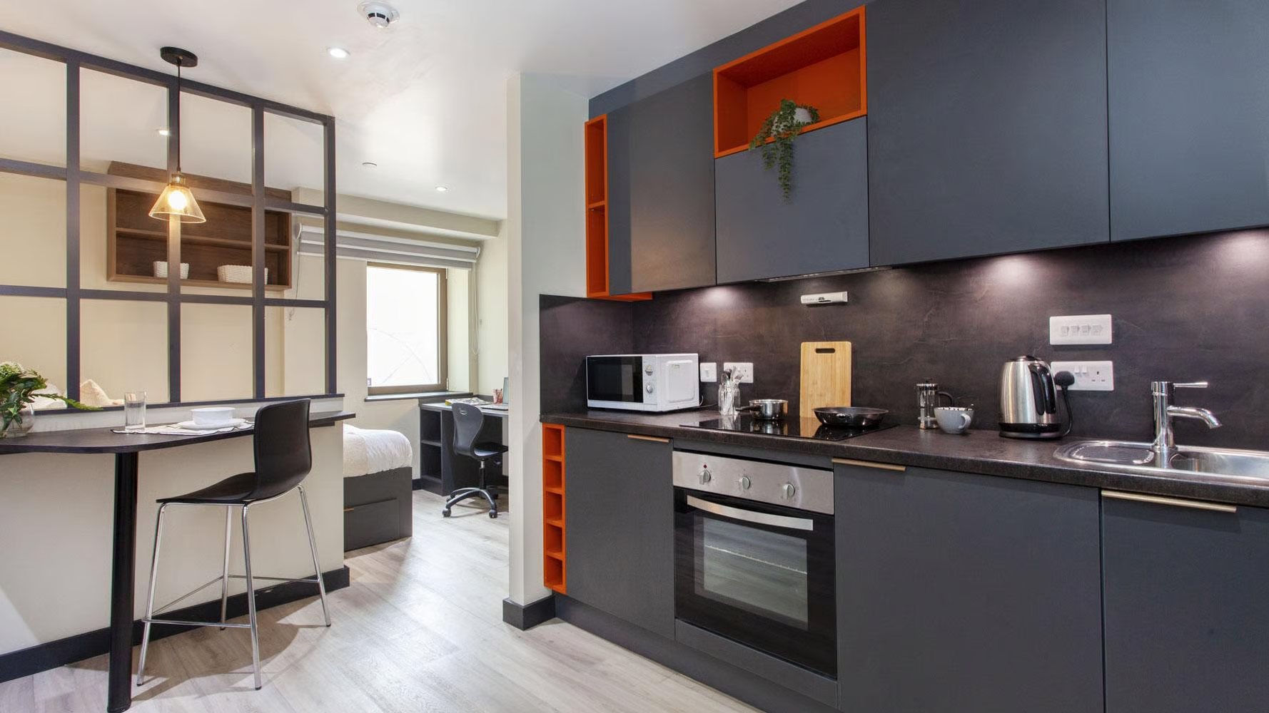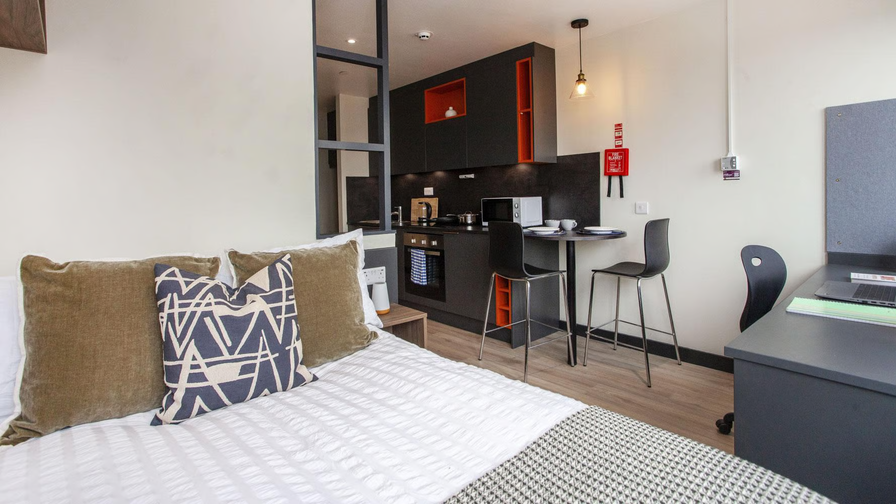 公寓内部提供了完善的生活设施和周全的服务,旨在为学生创造一个安全、舒适的居住环境。提供各种时尚现代的studio房型,设备齐全,配备浴室和设备齐全的厨房。公寓提供多种类型单人间,并提供一系列量身定制的便利设施,包括但不限于游戏区,电影院,健身房,私人自习室等,所有水电费都包含在租金中。