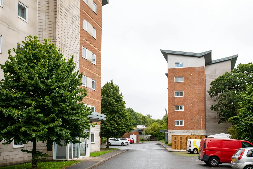 Clodien House 是卡迪夫的经典公寓之一,走的是 “务实不将就” 的路线。公寓楼是简洁的红砖风格,跟卡迪夫本地的建筑氛围很搭,走进大堂能看到工作人员常坐在前台。