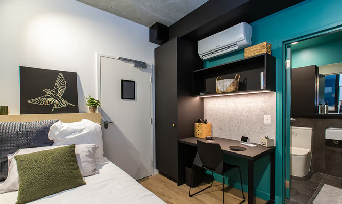 房型:King Single Studio(独立卫浴 + 小厨房 + 专属学习桌 + 舒适大床),