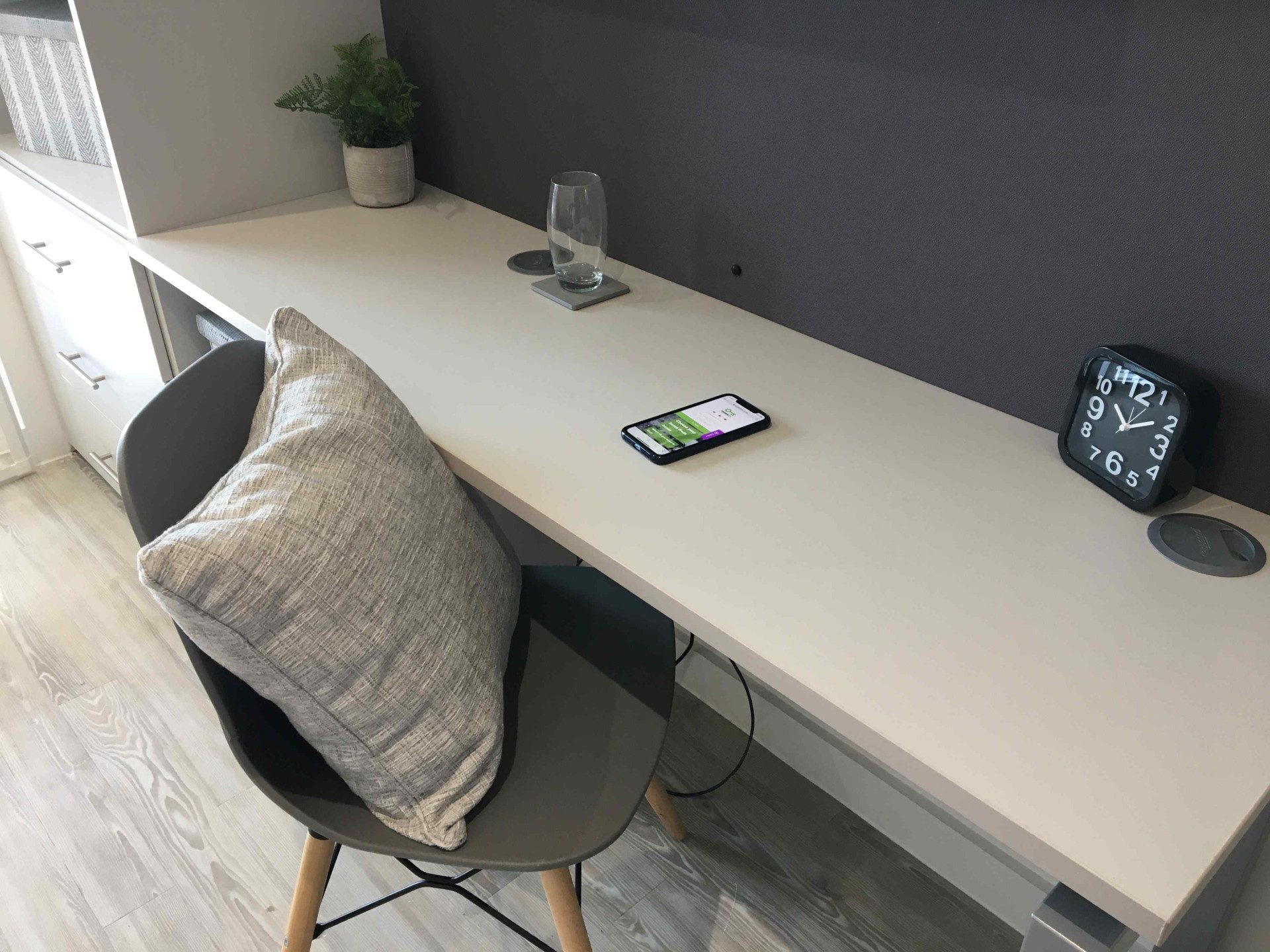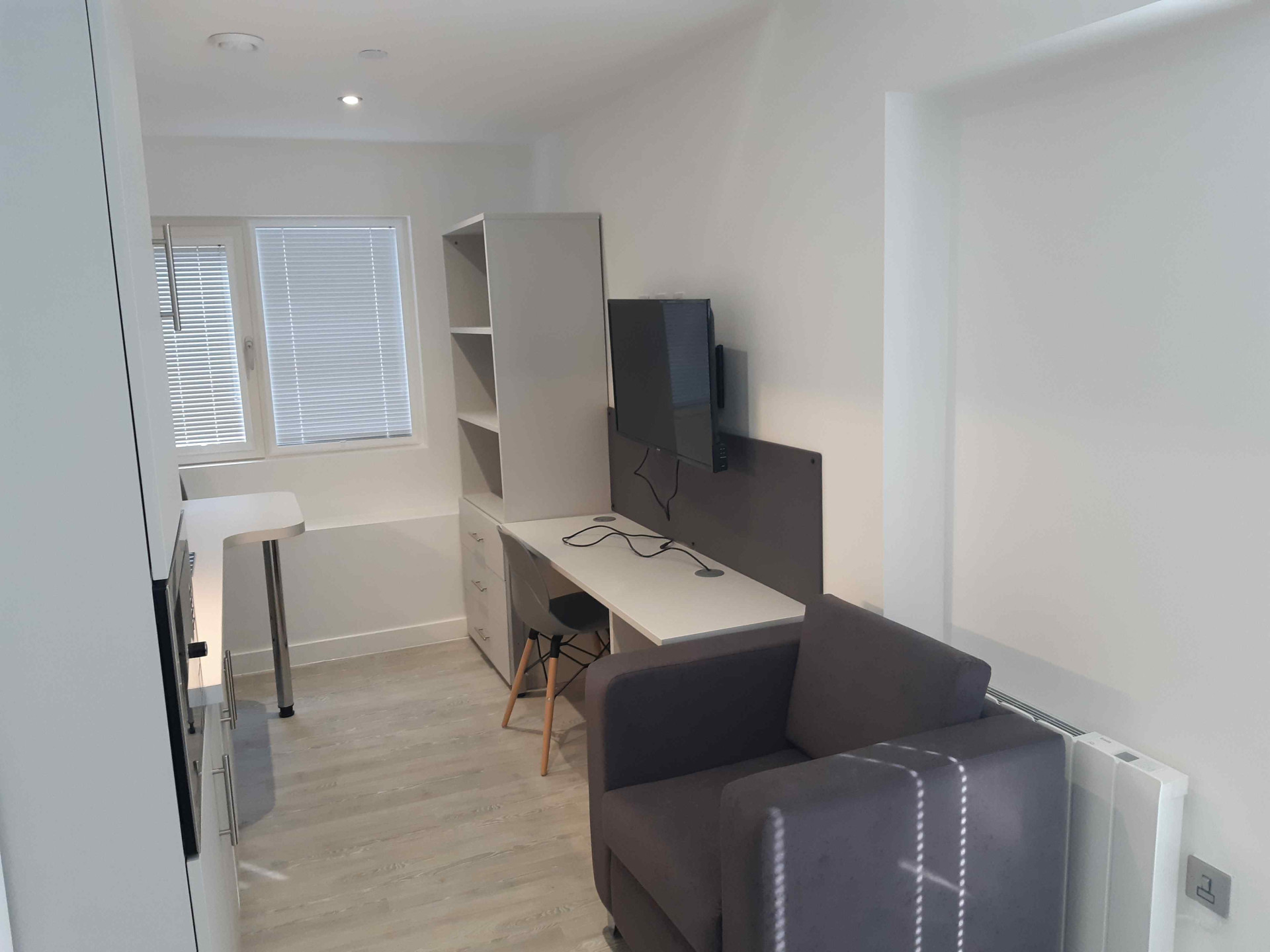 公寓主要提供En-suite(5-6人共享厨房)和Studio房型。每间卧室均配备舒适双人床、超大书桌和可自由开启的窗户,保证通风采光;冬季有高效暖气系统,公寓有 24小时前台安保+智能门禁,快递代收、维修响应及时。公共休息区配备台球桌、游戏机和私人影院,还配备免费的健身房。